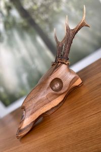 Mähnenhirsch aus Lindenholz + Nussbaumdesign